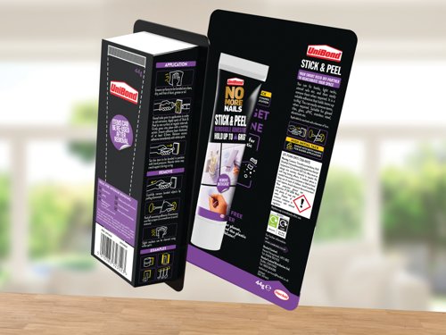 UniBond Stick and Peel is a strong, water resistant, adhesive which is non-permanent. Holding up to 6 kg, it is easy to remove when no longer needed. Ideal for use with one hook and a bond surface diameter of 5cm, this adhesive dries with a clear finish and can be adjusted up to 20 minutes. Supplied in a 44g tube.