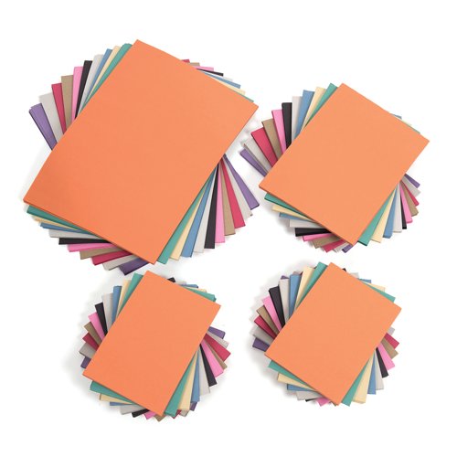 - Great value bumper paper pack of 1,250 sheets which reduces wastage with options of different pre-cut paper sizes. Each pack contains at least ten colours of versatile textured paper, perfect for a range of school art and craft activities. Suitable for a wide range of mediums including chalks, pastels, charcoal, pens, and graphite pencils. This makes it an ideal choice for diverse art projects. Supplied in a sturdy storage box, ensuring the paper remains organised and easily accessible, this feature enhances classroom management and efficiency.