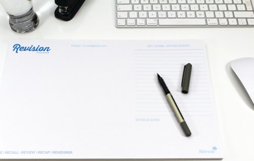 - This Luxpad Revision Desk Pad from Silvine measures 360 x 230mm and features 48 pre-printed page templates designed for revision notes, key notes, action points and much more. The handy 'how-to' inner cover, designed with blogger Stationery Magpie helps to support revision goals. Perfect for exam preparation, these pads are supplied in a pack of 5.