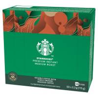 - Experience the rich, inviting aroma of STARBUCKS Premium Instant Medium Roast coffee. Crafted from 100% Arabica beans, this expertly blended coffee delivers a smooth, balanced taste with creamy notes of milk chocolate and nuts, inspired by the finest Latin American flavours.