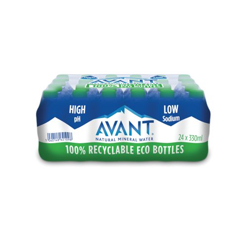 - Avant Natural Mineral Water is sourced from fresh springs and is known for its low sodium content and high pH, making it a refreshing choice for hydration. Supplied in a pack of 24 330ml bottles with screw cap lids.