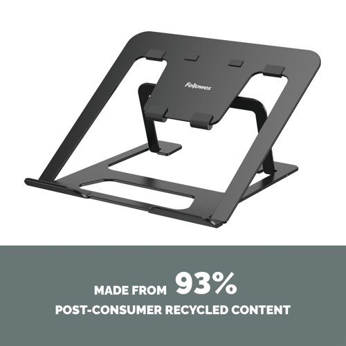 - The Fellowes Alumia Portable Laptop Stand is designed to help minimise discomfort in your workspace by elevating your laptop to a more ergonomically correct viewing position, reducing neck and eye strain. It supports laptops up to 5kg in weight and screen sizes up to 15 inches. With six easy-to-use height adjustments ranging from 8.1 to 13 cm, it promotes good posture and all-day comfort. The compact and lightweight design folds flat, making it perfect for storage or on-the-go use - ideal for hybrid working environments. Nonslip pads keep your laptop securely in place, while the open design enhances air circulation to help keep your device cool. The Alumia Portable Laptop Stand is FIRA-accredited, meeting the ergonomic requirements of European Health and Safety legislation (EN ISO 9241-5).