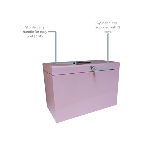 The Cathedral foolscap metal home file box is a strong and durable storage solution for all paperwork. Supplied complete with five suspension files, each with a clip-on index tab and paper label. The fold down carry handle makes it easy to transport and the cam lock ensures files are safe and secure.