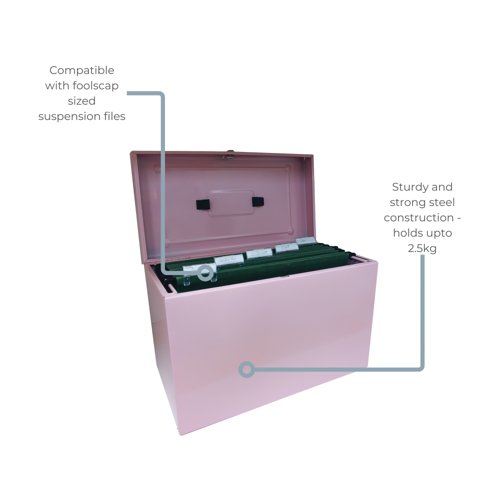 Cathedral File Box with 5 Suspension Files Foolscap Pastel Pink FPHOPP