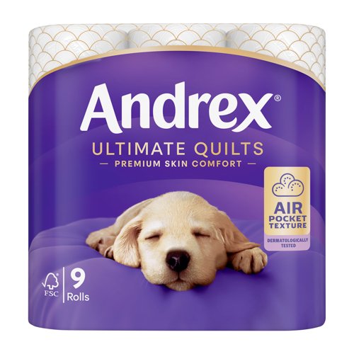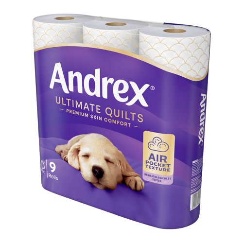 - Ultimate Quilts is Andrex's softest and most comforting for skin. Dermatologically tested, the thick, super soft sheets have a unique Air Pocket texture. 3-Ply toilet roll that is approved by the British Skin Foundation. This packaging is made from 50 percent recycled plastic.