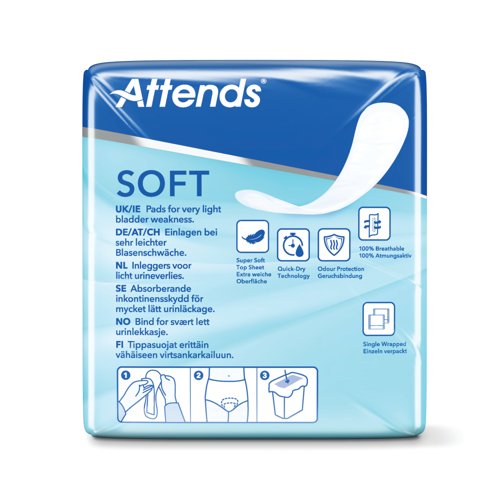 - Attends Soft 1 Mini Long are discreet absorbent pads designed to manage very light bladder weakness, specially developed for sensitive skin. Individually wrapped for improved hygiene and discretion, these extra-long pads are supplied in a pack of 16.