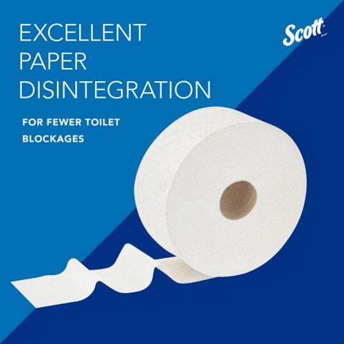 This Scott Control Toilet Tissue is 2-ply, which is gentle on skin, and is made from 100% recycled fibres that easily breaks down in water to prevent blockages. The 314m roll length and can deliver more than 1200 sheets per roll when used with the controlled single sheet dispensing system. Designed for use in high traffic washrooms, the high capacity centrefeed helps to reduce the need for refilling, making each roll last longer. This pack includes 6 rolls.