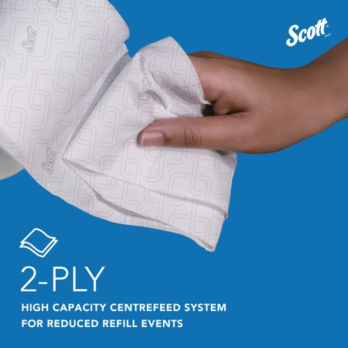 - This Scott Control Toilet Tissue is 2-ply, which is gentle on skin, and is made from 100% recycled fibres that easily breaks down in water to prevent blockages. The 314m roll length and can deliver more than 1200 sheets per roll when used with the controlled single sheet dispensing system. Designed for use in high traffic washrooms, the high capacity centrefeed helps to reduce the need for refilling, making each roll last longer. This pack includes 6 rolls.