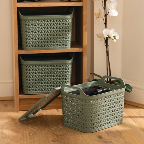 Strata Medium Urban Store Basket with Lid 14L Green XW123-LPG-VW