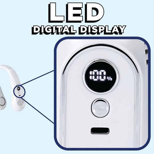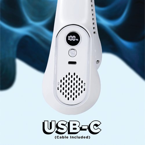 - Perfect for cooling you down, this neck fan from Status features 5 speed settings depending on how fast or slow you need the dual air vents to flow. Chargeable from USB-A to USB-C (cable included), this USB neck fan is simple to use with an LED digital display panel. Supplied in white.