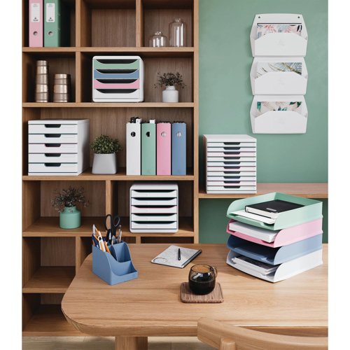 The best of design combined with the best of eco-responsibility. A perfect white made from plastic waste. The Autentik range therefore offers products that bring used plastics back to life. An Exacompta innovation. With Scandinavian influences and colours white, candy pink, sage and grey blue, this range will blend into workplace interiors and home offices alike.