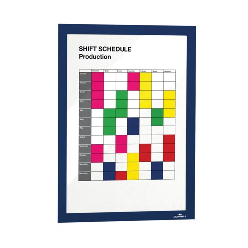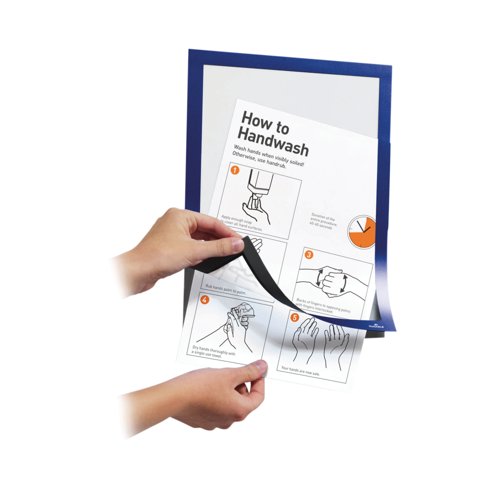 - The self-adhesive info frame DURAFRAME is the ideal solution for displaying information on solid and smooth surfaces. The inserts can be quickly exchanged thanks to the magnetic fold-back frame. When applied to glass, the information can be read from both sides and will leave no residue when removed. Perfect for displaying notices, signage, safety information in any workplace or at home.