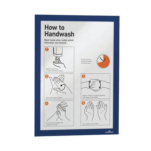 The self-adhesive info frame DURAFRAME is the ideal solution for displaying information on solid and smooth surfaces. The inserts can be quickly exchanged thanks to the magnetic fold-back frame. When applied to glass, the information can be read from both sides and will leave no residue when removed. Perfect for displaying notices, signage, safety information in any workplace or at home.
