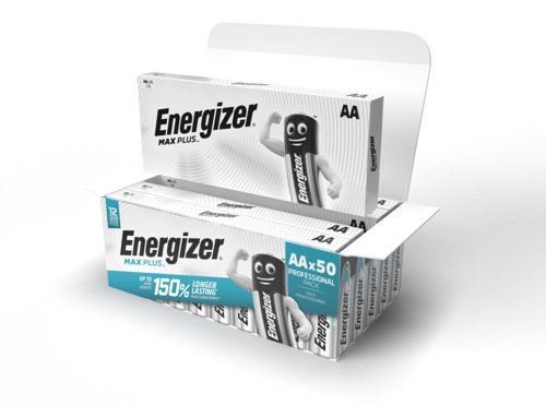 - Energizer® Max Plus™ AA batteries are our No.1 Longest Lasting Alkaline and are designed to support power-demanding devices and work tools. Max Plus™ batteries deliver reliable performance throughout usage, meeting every professional’s needs – made to last, not to leak. Designed to meet the demands of today’s most power-hungry devices, Max Plus™ AA batteries offer long lasting power. Whether its everyday devices like remotes and torches to the most demanding such as walkie talkies and measuring tools, Max Plus™ delivers every time. And because this is a long-lasting alkaline battery, you’ll use less batteries, thus creating less waste. Max Plus™ are now available in our larger Batteries Business Packs, ensuring that you’ll never run out of power! These bigger value packs are re-closeable, making them easy to store and stack – perfect for battery storage, whilst also being 100% recyclable packaging. Finally, Energizer® Max Plus™ batteries are incredibly reliable. They can be used safely without damage to expensive electrical devices. Offering practicality and longevity, Max Plus™ AA batteries withstand up to 15 years storage whilst maintaining power.