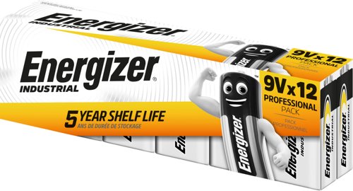 - Get more out of important business and industrial equipment by using Energizer Industrial Batteries. This pack of 12 9V batteries is the perfect choice for power-hungry tools and equipment for bulk users. This extra large pack contains the same great Energizer quality - just more of it, ensuring economical large volume use.