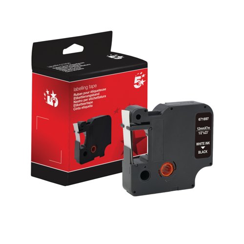 Five Star Non-OEM Replacement for Dymo 45021 White on Black 12mm x 7m FS671697