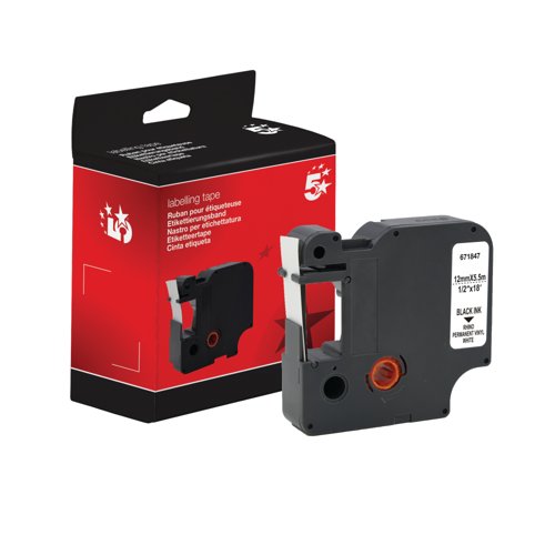Five Star Non-OEM Replacement for Dymo 1978364 Black on White 12mm x 5.5m FS671847