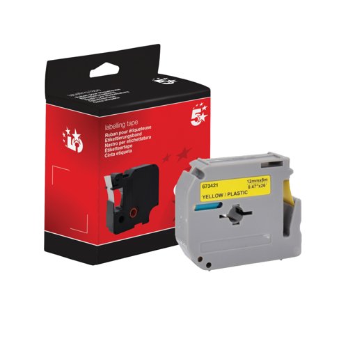 Five Star Non-OEM Replacement for Brother M-K631 Black on Yellow 12mm x 8m FS673421