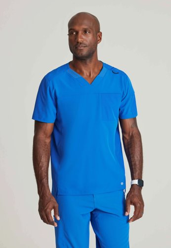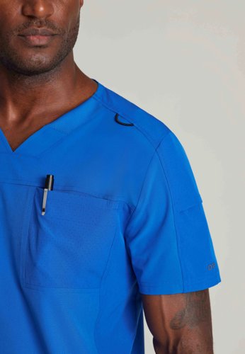 - Revolutionise your medical workwear with the Barco One Velocity Pro Scrub Top. Crafted from five recycled plastic bottles, this eco-conscious top delivers professional style and performance. Featuring a flattering V-neck and slimmer silhouette, it offers 4-way stretch, moisture-wicking technology, and anti-static properties. Practical details like a shoulder badge loop and chest pocket with pen slot make this the ultimate healthcare professional's garment.
