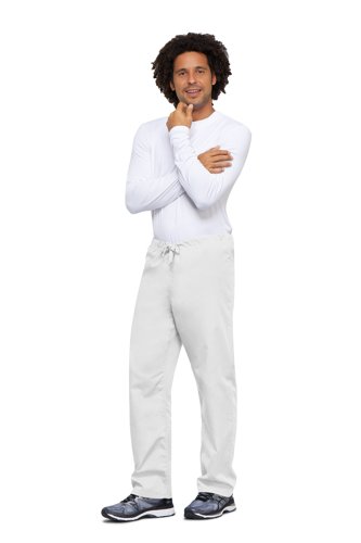 - Perfect for healthcare professionals, the Cherokee 4100 Unisex Scrub Trouser combines comfort and functionality. These versatile trousers feature an adjustable drawstring waist, practical cargo pocket with mobile phone compartment, and durable 65% polyester 35% cotton fabric. Machine washable up to 60 degrees. These scrubs deliver both style and practicality for medical workplace needs.