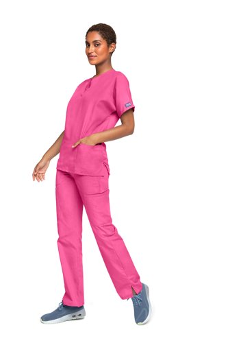 The Cherokee 4700 scrub top offers healthcare professionals a versatile and practical workwear solution. Designed for comfort and functionality, this unisex v-neck top features Dolman sleeves, side seam vents, and multiple pockets including a dedicated mobile phone pocket. Made from a durable 65% polyester/35% cotton blend with innovative soil release technology, it ensures easy care and a professional appearance throughout your demanding workday.