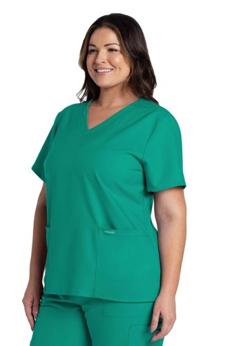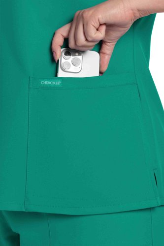 - Elevate your healthcare professional wardrobe with the Cherokee Originals Ultra V-neck Scrub Top. Designed for maximum comfort and functionality, this top features advanced PROTX2 technology with antimicrobial protection. The two-way stretch fabric ensures all-day mobility, while stylish decorative stitching adds a professional touch. Practical features include two spacious patch pockets and an ID badge loop, making this scrub top a versatile essential for medical professionals.