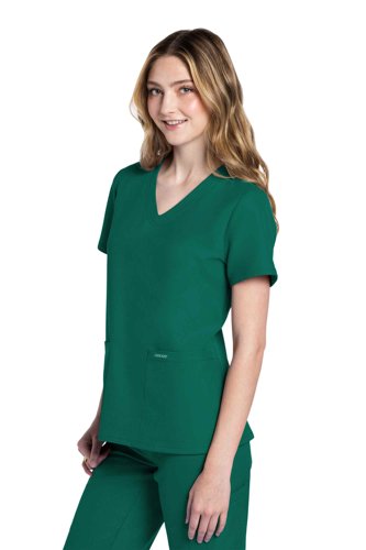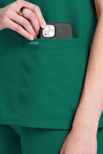 - Elevate your healthcare professional wardrobe with the Cherokee Originals Ultra V-neck Scrub Top. Designed for maximum comfort and functionality, this top features advanced PROTX2 technology with antimicrobial protection. The two-way stretch fabric ensures all-day mobility, while stylish decorative stitching adds a professional touch. Practical features include two spacious patch pockets and an ID badge loop, making this scrub top a versatile essential for medical professionals.