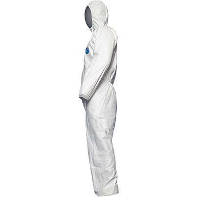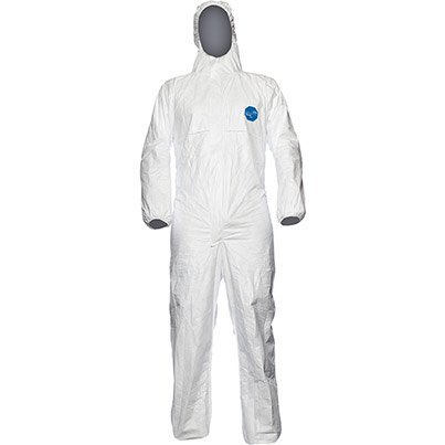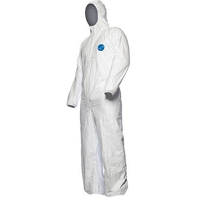 - These DuPont chemical coveralls use Tyvek 500 Xpert fabric to provide effective protection against asbestos, biological hazards, water-based chemical liquid splashes, and both pharmaceutical and radioactive particulates. Tyvek fabric offers great breathability, allowing perspiration to escape while still providing a strong barrier against hazards. The ergonomic design allows wearers to move without feeling restricted, and features an innovative sleeve design that prevents sleeves from riding up even when working overhead. The hood has been designed to closely fit the contours of the face, while a larger zip pull makes it easier to put on and take off while wearing gloves.