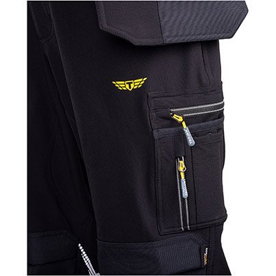 | Each thigh features a cargo pocket, with the left having a zipped mobile phone compartment and pen pockets also |