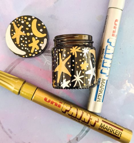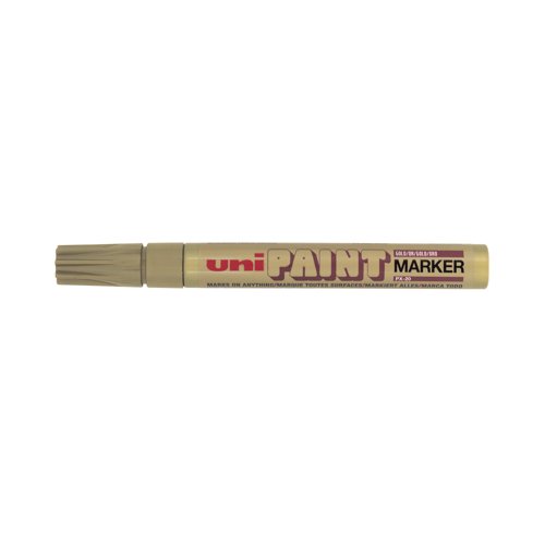 - The uni-ball UniPAINT marker is designed to deliver vibrant colour in waterproof ink on any surface. These oil-based permanent markers are great for artists, students and anyone who wants to make a lasting mark. Featuring a strong 2.2 - 2.8mm bullet tip for great colour coverage and strong, clean line work. Supplied in a pack of 12 gold markers.