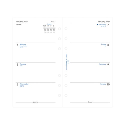- Organise your week at a glance with this personal, week on two pages diary. Printed in English language only, this refill pack is supplied in white.