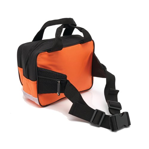 Ideal for first aid incidents on the pitch, court or course, this Sports First Aid Kit is designed to be easily carried while holding enough content to treat all minor sporting injuries. Supplied in bright orange with a reflective strip ensuring easy visibility.