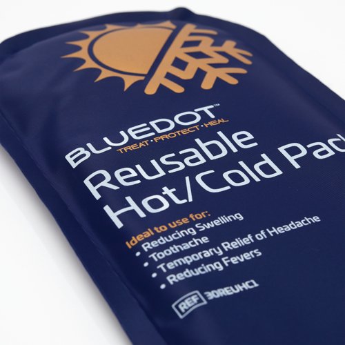 - This small Blue Dot reusable hot/cold pack is the perfect solution for temporary relief from various discomforts such as muscle aches, back pain, sinusitis, and menstrual cramps. It can be frozen to provide a soothing cold therapy or microwaved for a comforting heat therapy experience. Measuring 130 x 140mm, the pack is supplied in blue.