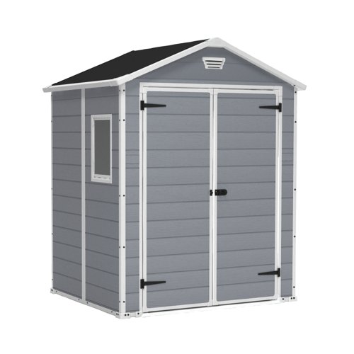 - When elegance meets functionality. The Keter Manor 6x5 Garden Shed is an elegant yet durable outdoor storage shed. Made of innovative lightweight panels 'H' shaped, double-wall structure constructed to provide extra strength to withstand heavy duty weather and are built to last. The Manor 6x5 is a maintenance-free shed, no varnish or paint is needed. It features wide double doors for easy access, integral floor panel and ventilation that keeps your stored items clean and dry, two Victorian windows for lots of natural light, a ceiling that is high enough to let you move around with ease and is lockable for extra safety and security.