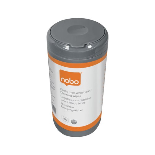- These whiteboard cleaning wipes are ideal for maintaining whiteboards, keeping them in pristine condition. The tub is made from 100% pre-consumer recycled plastic with a easy access hinged lid which prevents the wipes from drying out and the perforated edge allows single-wipe dispensing. Effortlessly removing ink residue from all dry wipe whiteboard surfaces, the wipes are ideal for daily maintenance. Perfect for classrooms, offices, or home offices, these wipes give optimal results when used with a Nobo whiteboard eraser. Supplied in a tub of 100 wipes