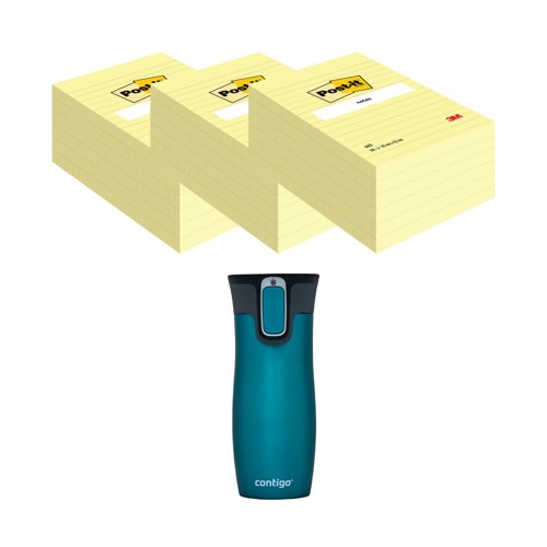 Post-It Notes XXL 101x152mm Lined Yellow 3x6 Pads (Pack of 18) + FOC Contigo Travel Mug