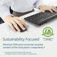 | Mouse includes 65% post-consumer recycled plastic, keyboard includes 50% is post-consumer recycled plastic |