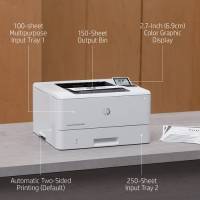 HP's entry-level Enterprise-class printer with speeds up to 40 ppm and strongest security. With an input capacity of 350 and an output of 150 sheets. This printer is intended to work only with cartridges that have a new or reused HP chip, and it uses dynamic security measures to block cartridges using a non-HP chip. Periodic firmware updates will maintain the effectiveness of these measures and block cartridges that previously worked. A reused HP chip enables the use of reused, remanufactured, and refilled cartridges.