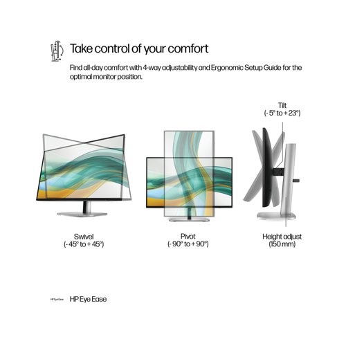 Get more out of your workday with the HP Series 5 Pro 23.8 inch FHD Monitor. Create the setup that works for the way you work, wherever you work, with refined visual clarity and adjustable comfort built into a sleek, modern design.