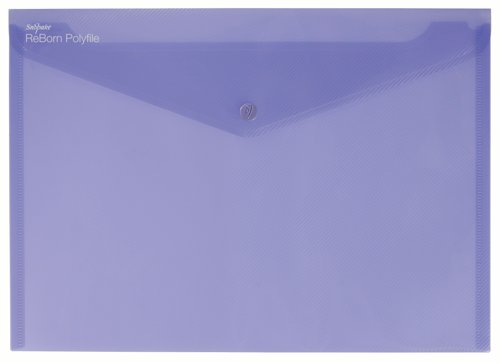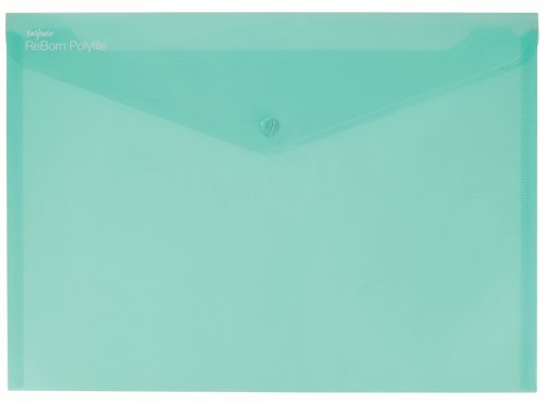 This Snopake Reborn Polyfile in A4 size is ideal for punchless filing, you can store and organiser you documents, photographs and artwork in perfect condition in the water-resistant wipe-clean folder. Can hold up to 150 sheets of paper. Snopake ReBorn is made from 100% recycled, heavy-gauge and tough polypropylene, the responsible and eco-friendly choice. with a 5 year guarantee. The attractive transparent superline finish in soft pastel hues, is ideal for quick and easy identification of contents, secured by a colour coordinated press-stud closure.