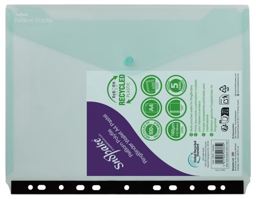 | Snopake ReBorn Ringbinder Wallets are made from recycled, top quality, high strength polypropylene, offering you long term protection for your documents with a 5 year Guarantee |