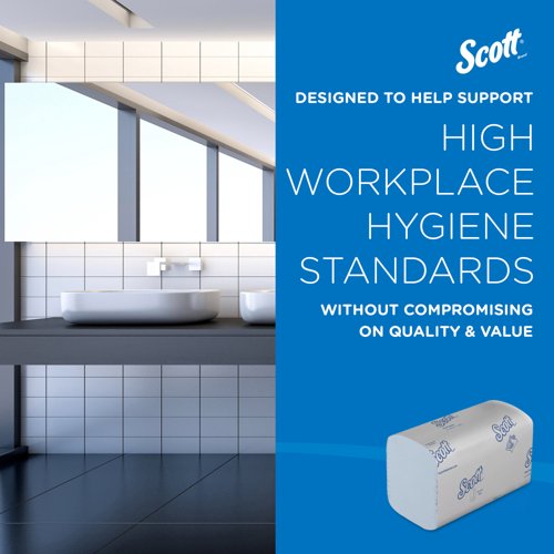 These Scott Control disposable paper towels are ideal for drying hands in bathrooms and kitchens. The clever, interfolded design helps to prevent towels from ripping when pulled from the dispenser, and ensures only one towel is dispensed each time, reducing mess and waste. The unique Airflex technology results in superior absorbency, helping to reduce the risk of cross contamination. These paper hand towels are suitable for contact with food. This pack contains 15 packs of 240 hand towels measuring 315mm x 200mm.