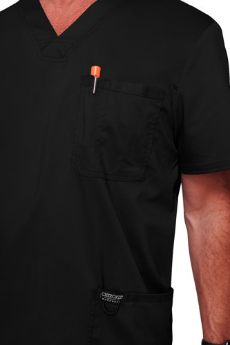 - A classic fit V neck scrub top from the Cherokee Revolution range. This is a classic fit scrub top in sizes XXS-3XL to suit all body shapes and sizes. This top is designed with comfort and practicality in mind, with 3 pockets, a bungee loop and side vents.