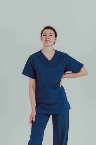 A brand-new scrub top from the latest Key Scrubs range - Eco-Stretch. This environmentally friendly scrub top is made with 45% recycled polyester and 5% spandex, providing sustainability and comfort all at once. With 3 handy pockets and luxurious stretch fabric, this scrub top ticks all the boxes for any healthcare professional.