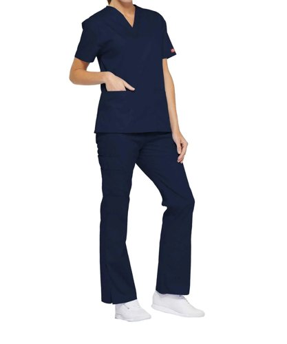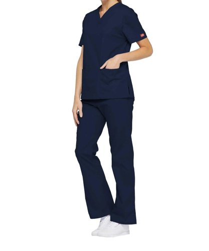 Dickies Signature V-neck Scrub Top Comfortable Healthcare Workwear Professional Medical Attire Nav