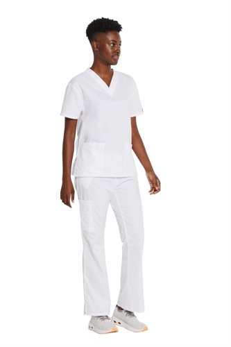 - Discover professional comfort with the Dickies EDS Signature V-neck Scrub Top. Designed for healthcare professionals, this ladies' fit top combines style and functionality. Crafted from soft brushed cotton blend, it features practical pockets and side vents for enhanced mobility. Perfect for long shifts, this affordable scrub top offers durability and comfort in one professional garment.