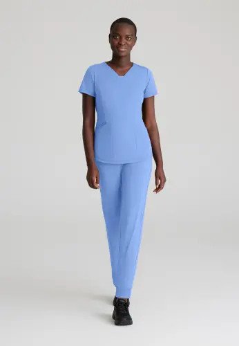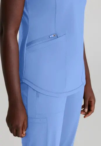 - Experience professional comfort with the Skechers Slip-ins Serene Knit Scrub Top, designed for healthcare professionals. This innovative top features a flattering sweetheart neckline and princess seams, delivering a tailored fit with exceptional 360 degree stretch. Stay cool and dry with moisture-wicking technology and enjoy practical storage solutions including front pockets, a hidden zipper pocket, and convenient pen slot. Made from a durable 86% Nylon and 14% Spandex blend for ultimate flexibility during long shifts.