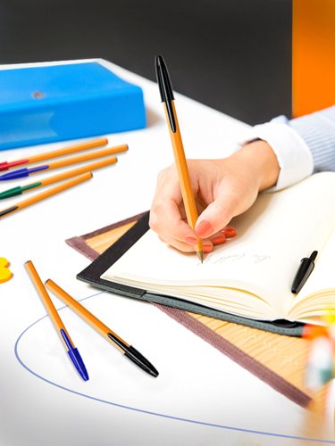 BIC Orange Original Fine ball pen gives you more accuracy when writing, thanks to its fine-point 0.8mm tip, making it better-suited to more precise jobs. As well as this, it's environmentally friendly as it has NF-accredited Environment Status and offers strong performance with 3,500 writing length on average*.