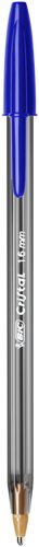 These Bic Cristal Ballpoint Pens feature a durable tungsten carbide ball mechanism and smooth oil-based ink for reliable, everyday use. The large 1.6mm tip produces a 0.6mm line for bold handwriting. The hexagonal barrel includes a blue cap and end plug that matches the ink for easy identification. This pack contains 50 blue pens.