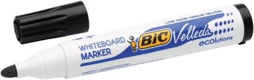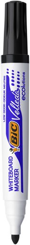 - These Bic Velleda Whiteboard Markers feature ketone-based ink that glides on smoothly and erases just as easily, and is low odour to ensure comfort when writing extensively. It features a strong acrylic tip that will not bend or retract into the barrel, even with heavy use. The bullet tip writes a consistent bold line for ease of use.